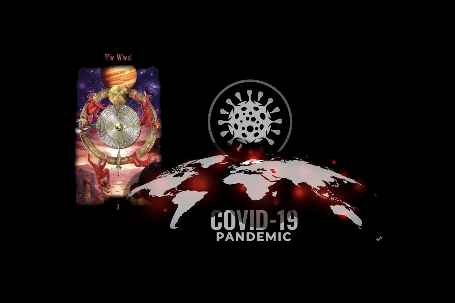 It is interesting to note that key Major Arcana cards such as the Death Card and The Tower did not manifest themselves as a reflection of the COVID-19 virus pandemic, but instead, it is represented by the Wheel of Fortune card! To remind you, the Wheel of Fortune card represents something that happens to us, either for good or for bad, but reflects something happening that is beyond our control. Unfortunately, I can’t think of a better example of an event that affects people’s lives, beyond their control, than what has happened with the COVID-19 pandemic.